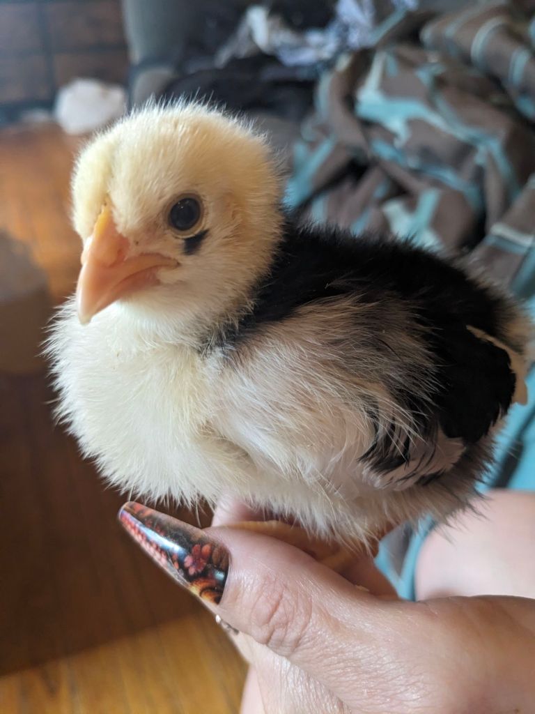 With feathers already hinting at earthy tones and eyes like she’s seen several lifetimes of migration routes, Sacagawea is our little pioneer. She doesn’t fight for top spot in the pecking order, she earns it by being the one they all follow when the heat lamp flickers or the snacks drop.