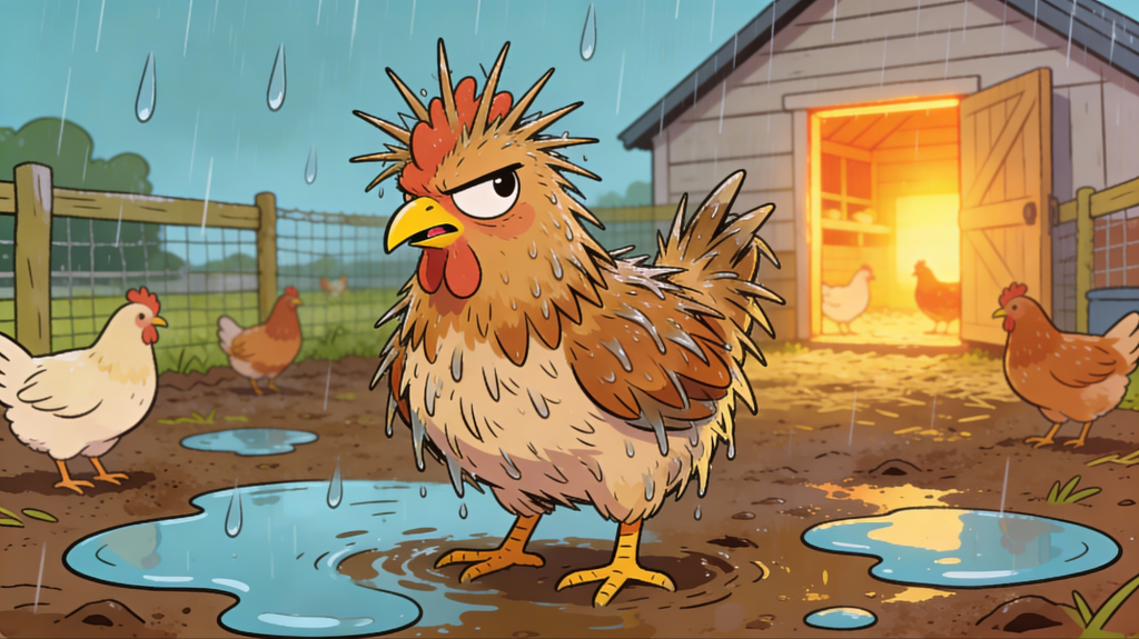 If you’ve ever seen a truly wet hen, you know the vibe: flustered, feisty, and somehow still marching around like she has Very Important Business to do! She shakes herself off, glares at the puddles, then dives right back into scratching, clucking, and policing everyone else’s space.